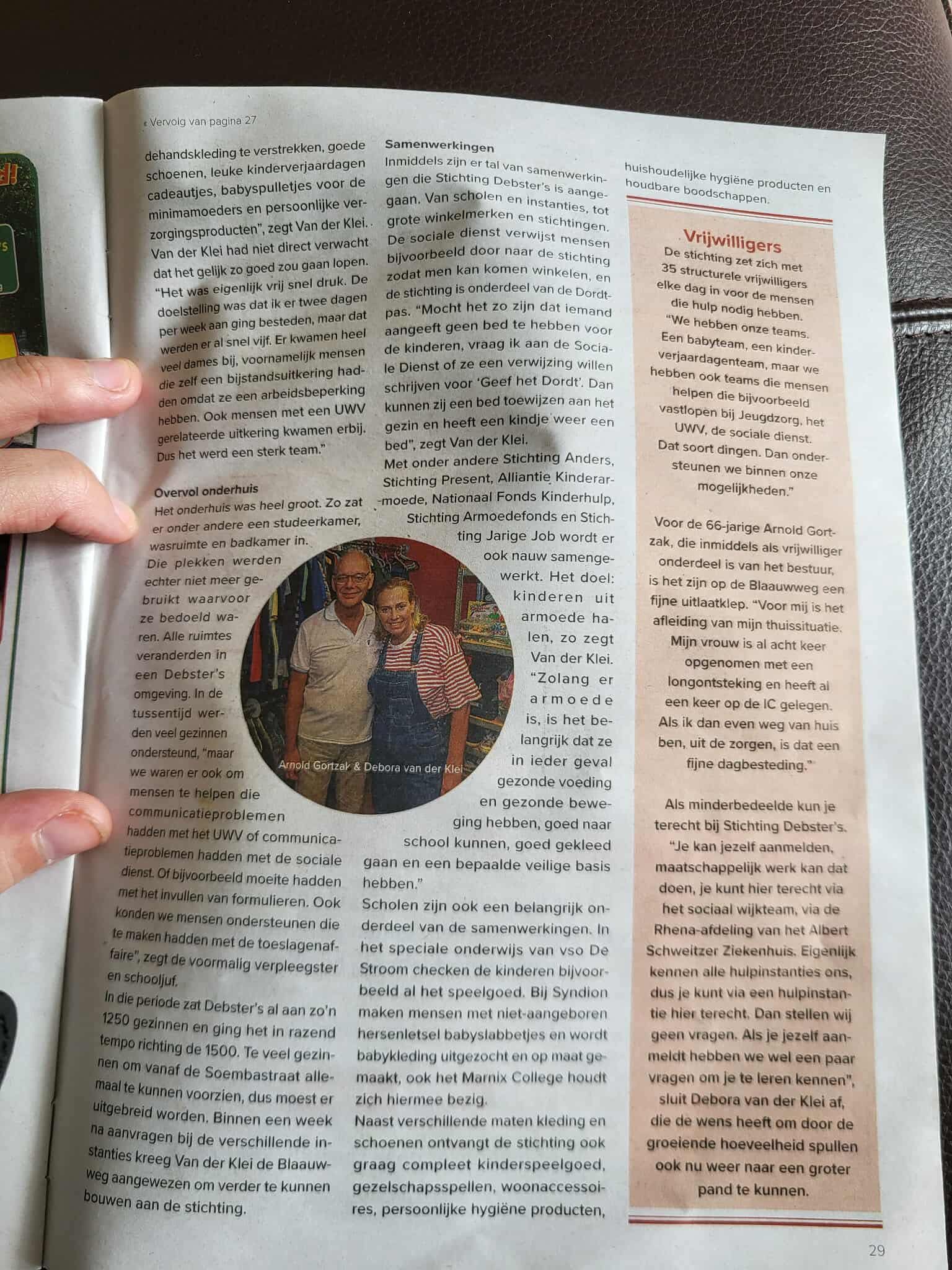 Motivatie jury: Stichting Debster’s is inspirerend en draait volledig op vrijwilligers. Vanuit een eigen woning, wordt dit initiatief vormgegeven en hebben zij in korte tijd enorm aan de weg getimmerd. Deze vrijwilligers werken hard en een aanmoediging kunnen ze goed gebruiken. Vanuit liefde, compassie en er zijn voor je medemens die het niet of minder breed heeft. Hun ambitie is enorm en dit verdient zeker een aanmoediging.