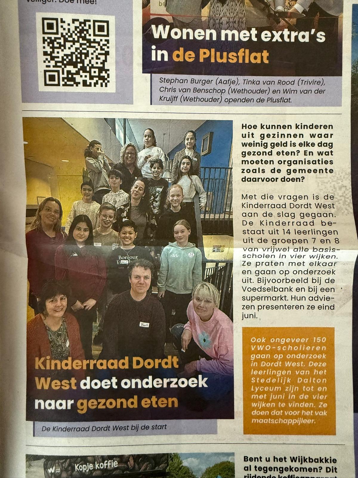 Debora neemt namens Stichting Debster’s deel aan de Kinderraad DordtWest. De leerlingen van verschillende basisscholen gaan op onderzoek met de vraag: Kunnen gezinnen die in armoede leven eigenlijk gezond eten? Na 8 bijeenkomsten komen ze tot een gezamenlijk besluit en brengen hun advies uit aan de gemeente Dordrecht en de gemeenteraad.